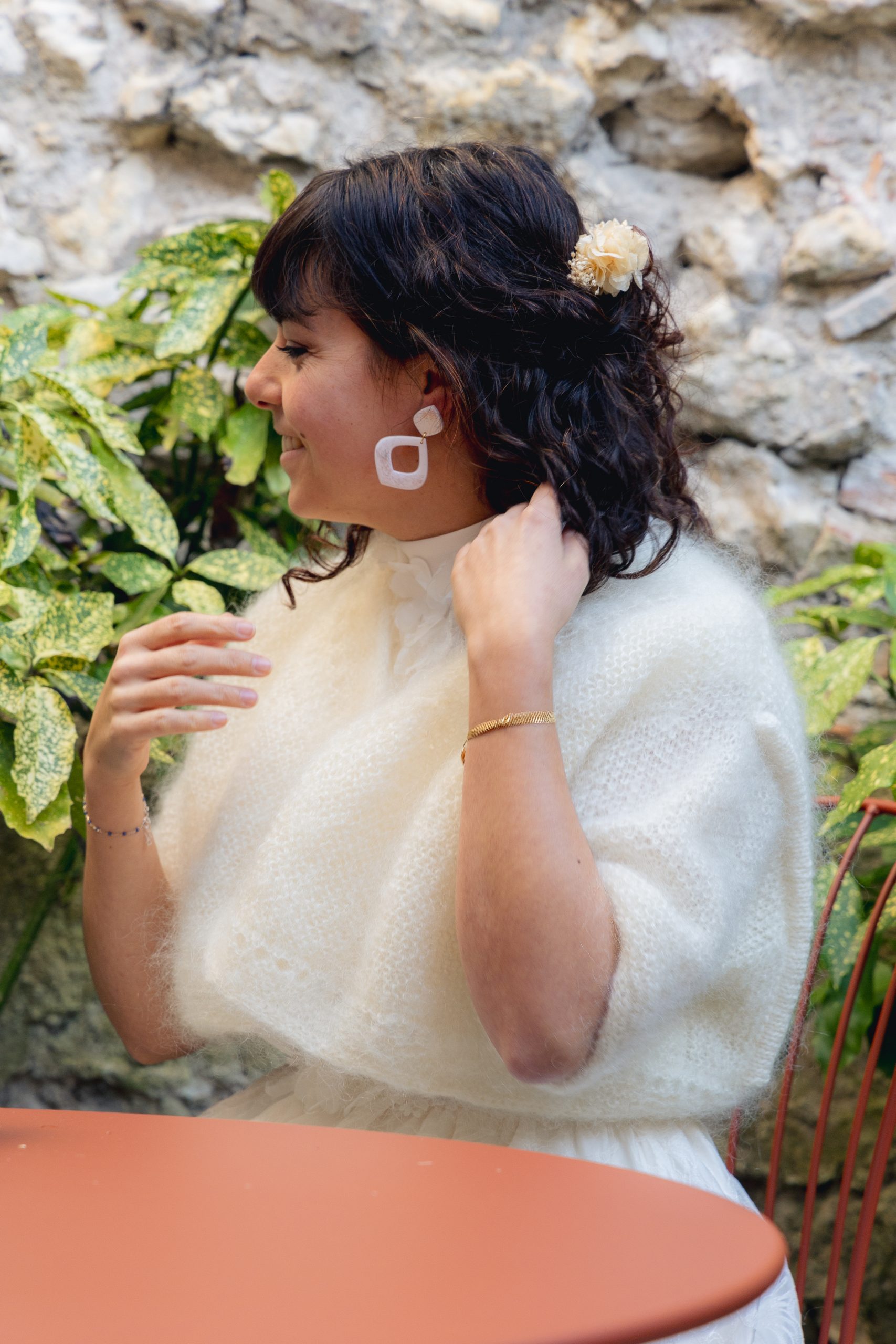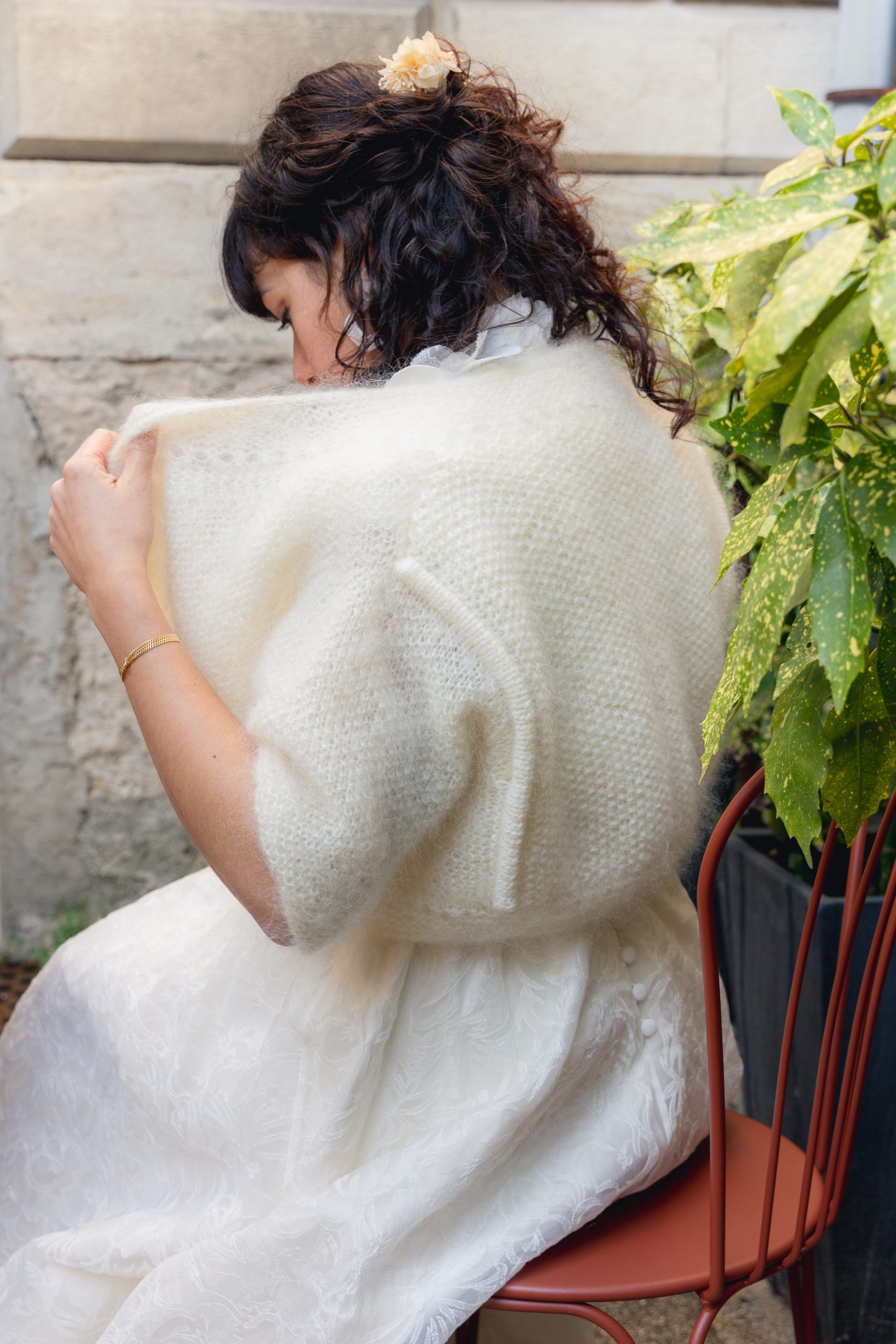 Le gilet Simone est l’accessoire indispensable pour vous réchauffer lors de votre mariage.