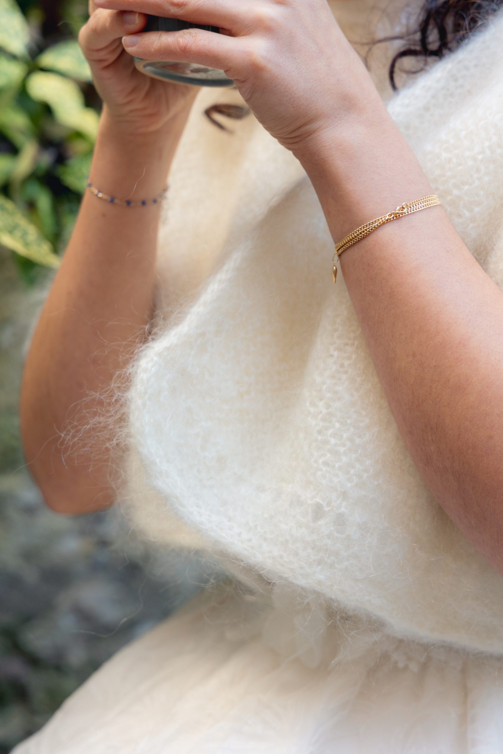 Conçu en collaboration avec Stéphanie, artisane passionnée, chaque pièce est tricotée à la main et réalisée sur commande.